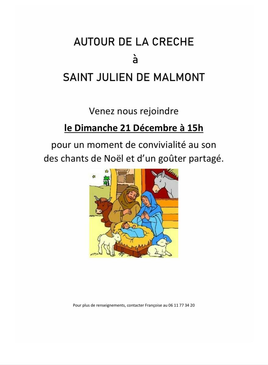 Les Amis de Saint Julien organisent, le dimanche 21 Décembre, un moment de convivialité autour de la crèche à partir de 15h00.