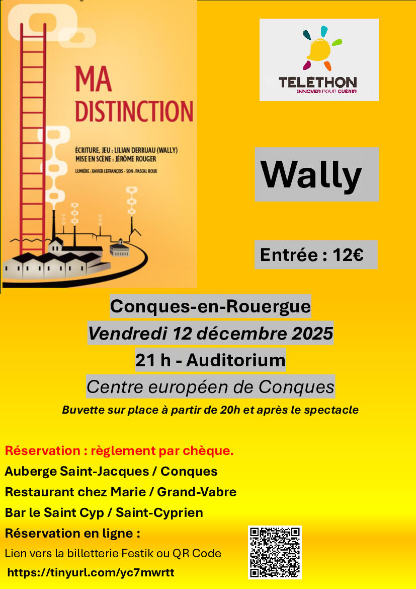 Cette année la soirée téléthon se déroulera à l'auditorium de Conques par un spectacle "Ma Distinction" de Wally