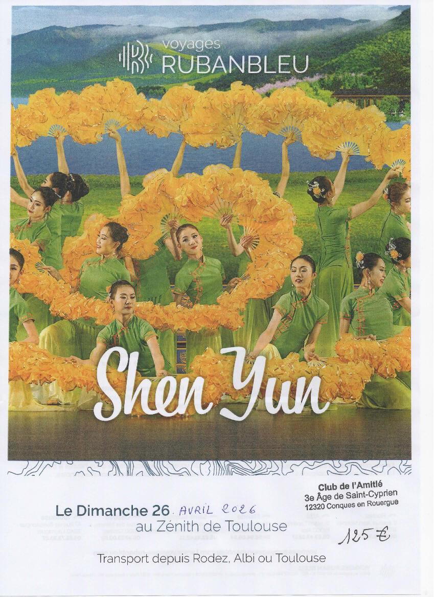le Club de l'amitié de Saint-Cyprien vous propose le spectacle SHEN YUN le dimanche