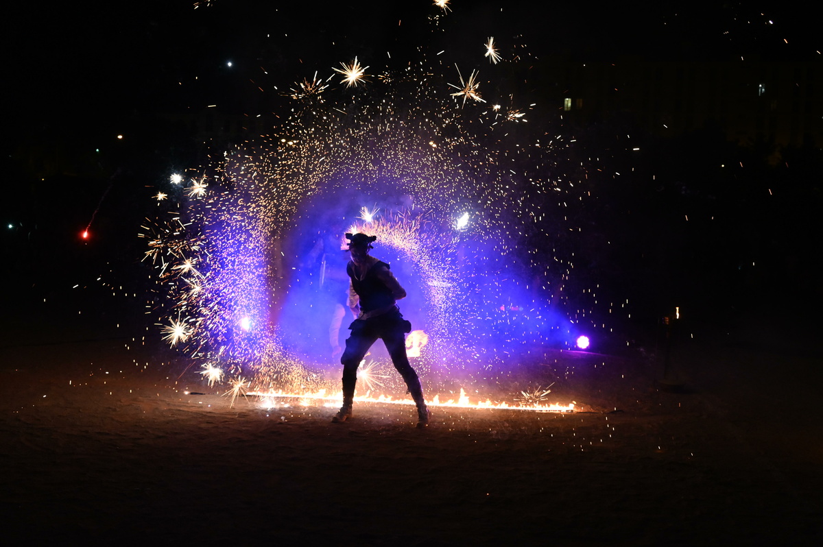 Un défilé et un spectacle pyrotechnique suivis par une foule immense.