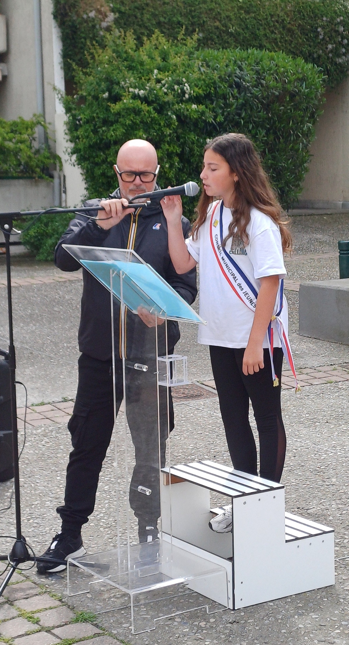 En présence de nombreux élus du Conseil Municipal et du Conseil Municipal des Jeunes, ce moment de mémoire a débuté par la lecture d'une lettre par Lena TAVERNIER, membre du CMJ.