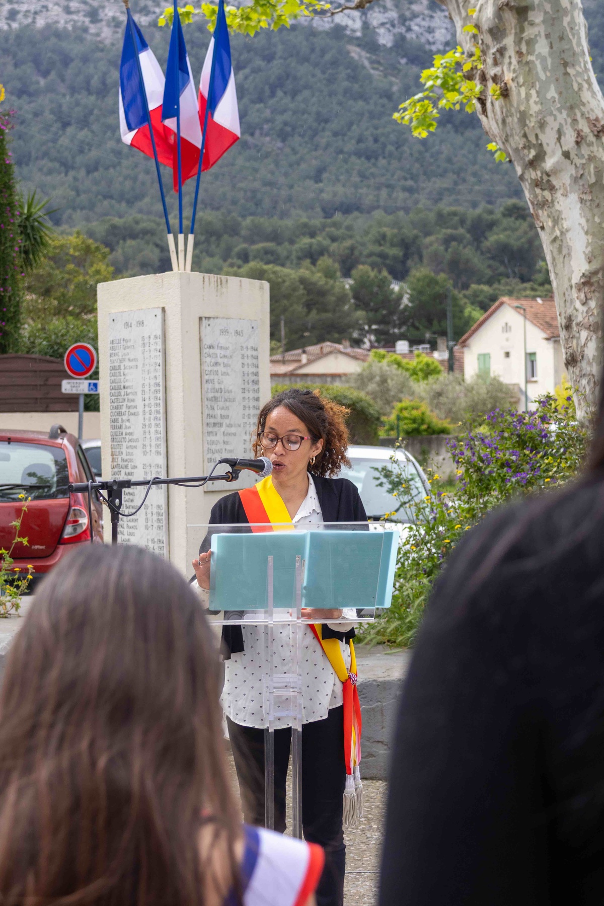 Myriam BUSSIER, Conseillère Municipale, a prononcé le discours dans le lequel elle a rappelé de "Garder toujours à l’esprit que le renoncement aux valeurs de notre République, Liberté, Égalité, Fraternité peut conduire au pire".