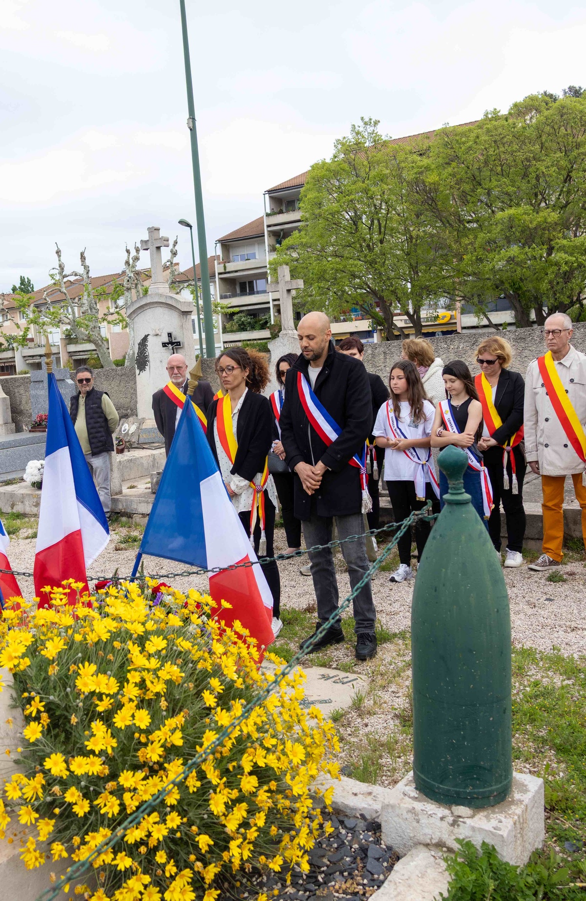 La cérémonie s'est poursuit par le traditionnel dépôt de gerbes aux monuments aux morts et au vieux cimetière par Myriam BUSSIER, Joseph BUGEIA, Mohamed MEBROUK, les enfants du Conseil Municipal des Jeunes, le représentant du Centre de Secours d'Aubagne/La Penne-sur-Huveaune et aux membres de la Réserve Civile Communale.