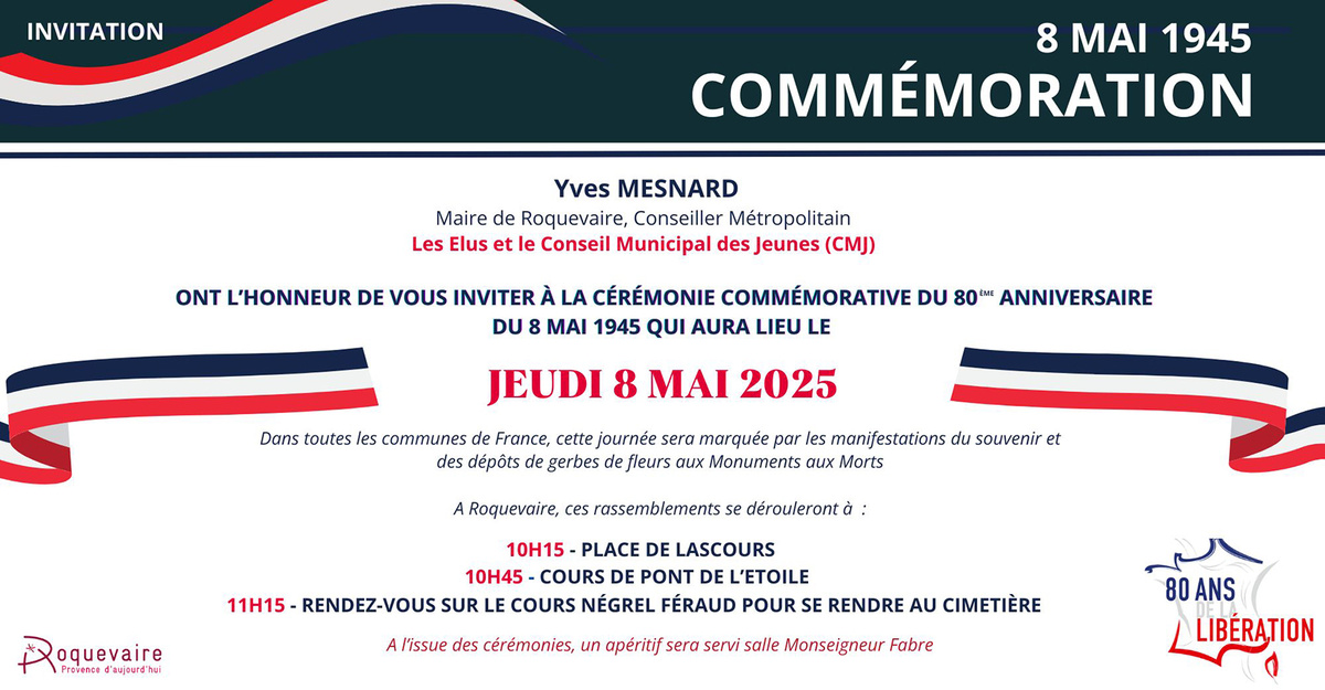 Su ayuntamiento / Noticias / JEUDI : COMMEMORATION DU 8 MAI 1945 A ROQUEVAIRE