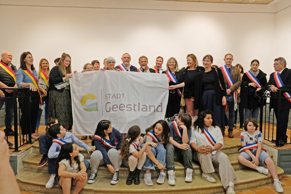 Dans le cadre du programme d’échange avec leurs homologues Roquevairois, saluons la présence des élèves et enseignantes du collège allemand de Geestland, qui ont remis à M. le Maire, au nom de la Ville le drapeau de Geestland, symbole fort du jumelage en cours entre nos deux villes.