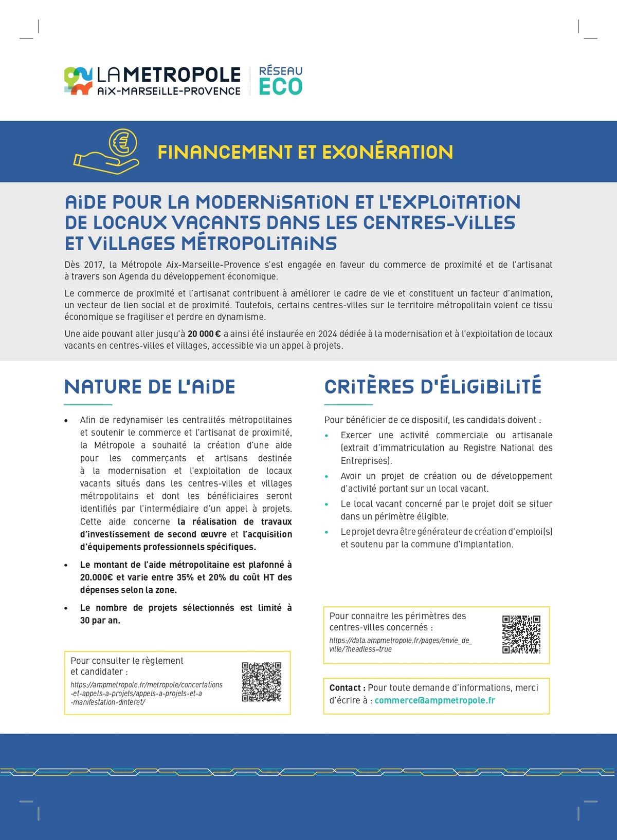 👉Une nouvelle session de l’appel à projets « Aide pour les commerçants et les artisans destiné à la modernisation et l’exploitation de locaux vacants situés dans les centres-villes et villages de la Métropole Aix-Marseille-Provence » est ouverte depuis le 1er septembre 2025 par le service commerce de la Métropole Aix-Marseille-Provence.