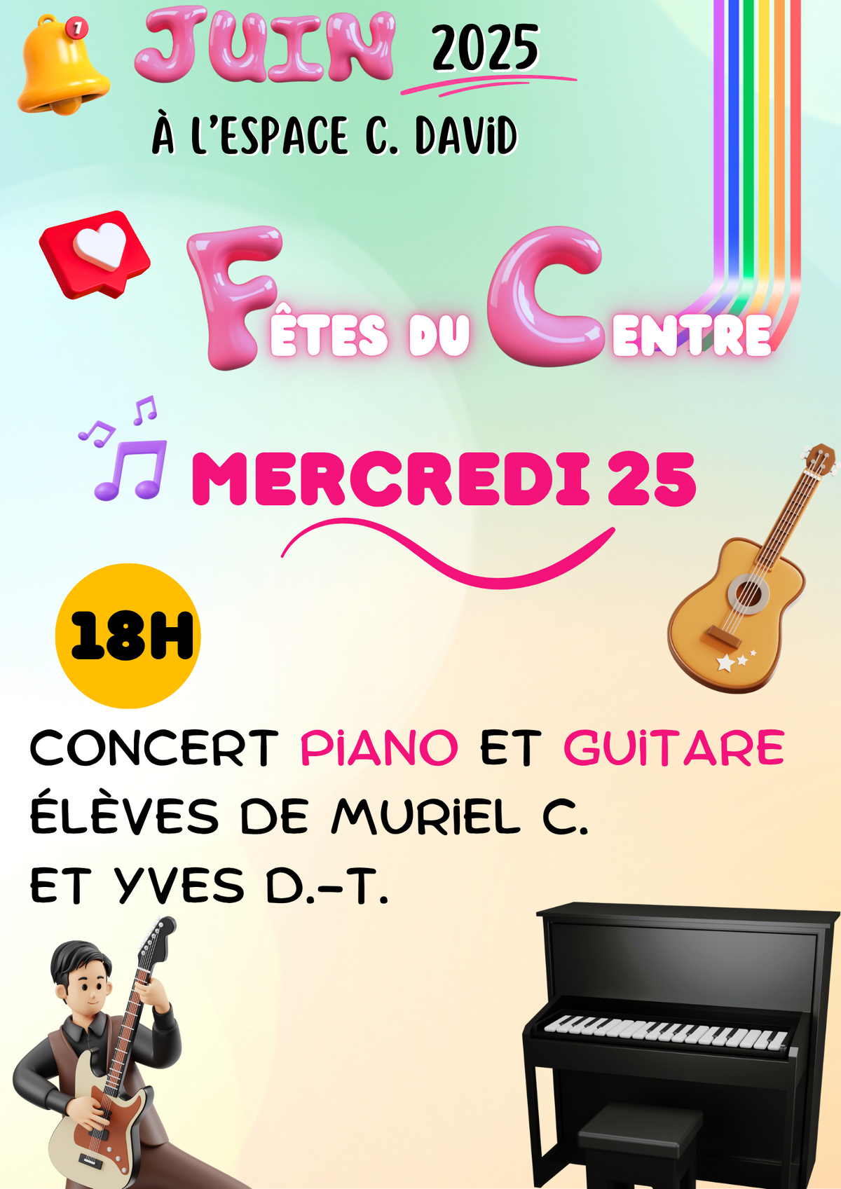 Les fêtes du Centre Culturel se poursuivent avec, aujourd'hui, CONCERT piano et guitare - Elèves de Muriel C. et Yves D.-T à 18h 🎹