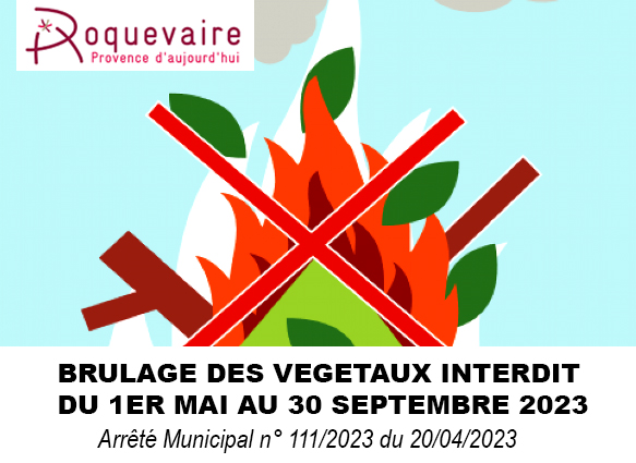 Compte tenu de l’état de crise sécheresse actuelle et du fort risque d’incendie, Monsieur le Maire a pris un arrêté interdisant le brûlage des végétaux à partir du 1er mai 2023.