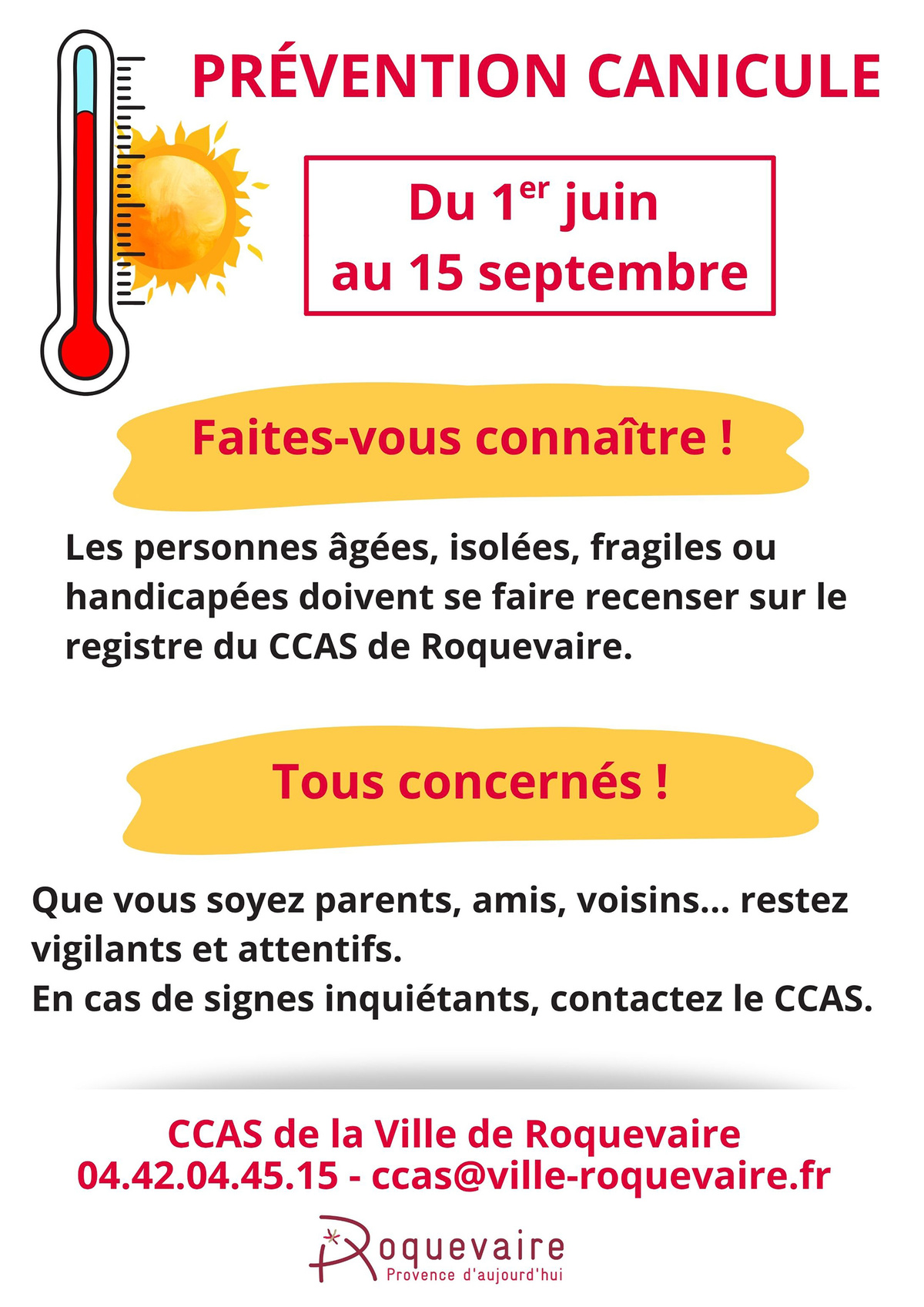 👉 Inscription au fichier des personnes vulnérables en contactant le CCAS de Roquevaire au 04.42.04.45.15 ou ccas@ville-roquevaire.fr.