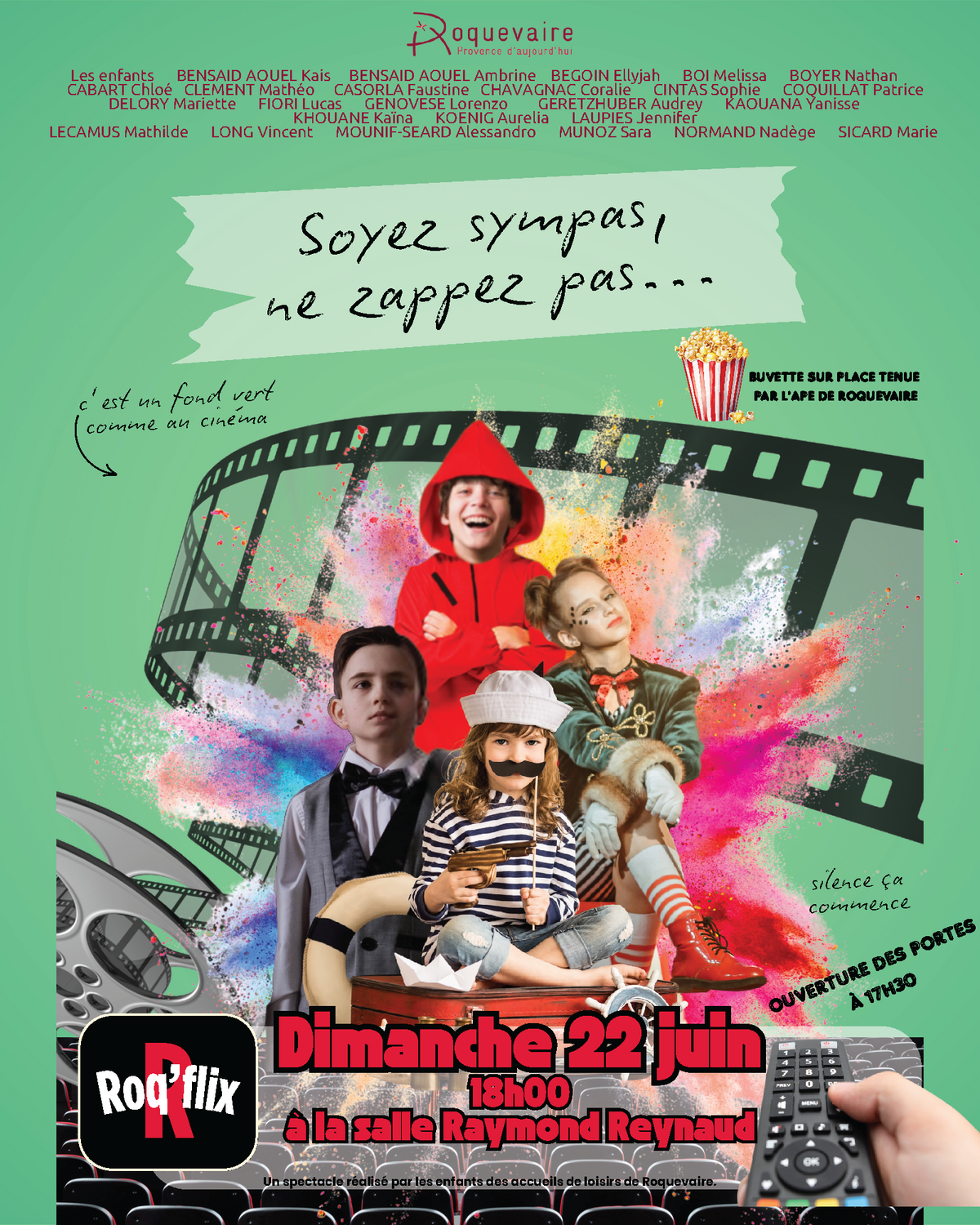 Les enfants ayant fréquenté l’ALSH durant l’année scolaire 2024/2025, accompagnés de leurs animateurs, vous donnent rendez-vous pour découvrir « Roqflix », un spectacle inspiré de l’univers des films et des séries 📺🎥