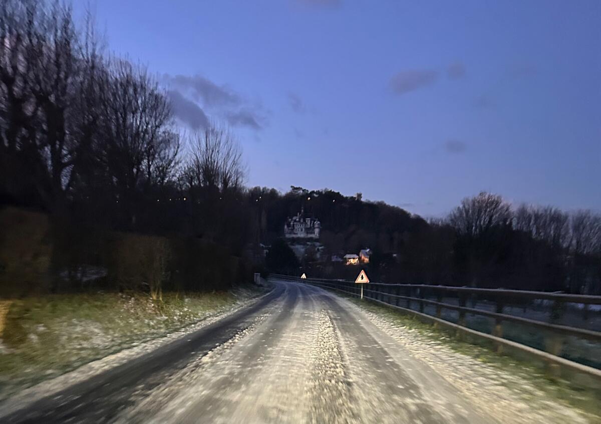 Notez que la route du Littoral est très verglacée.