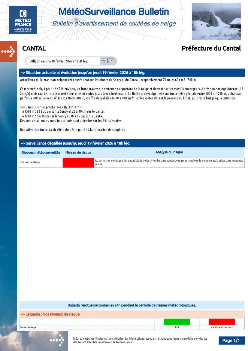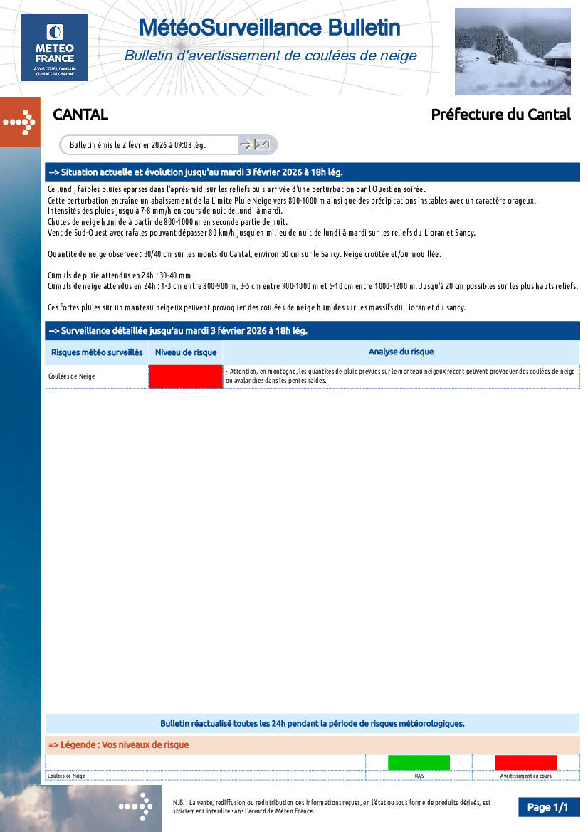 Avertissement : Coulées de neige