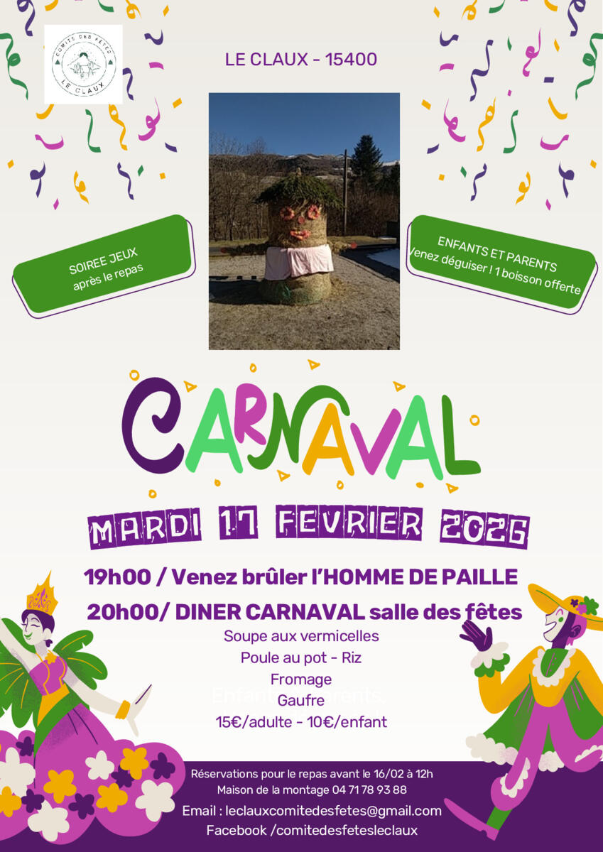 Soirée Carnaval du 17 février 2026 sans l'homme de paille