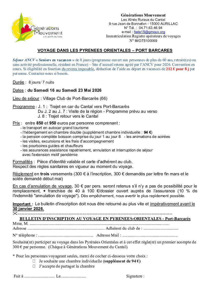 Voyages organisés par Génération Mouvement