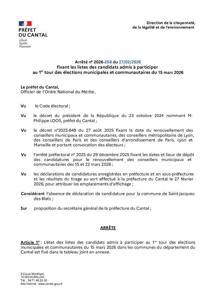 Elections municipales Listes des candidats Arrêté 2026-258