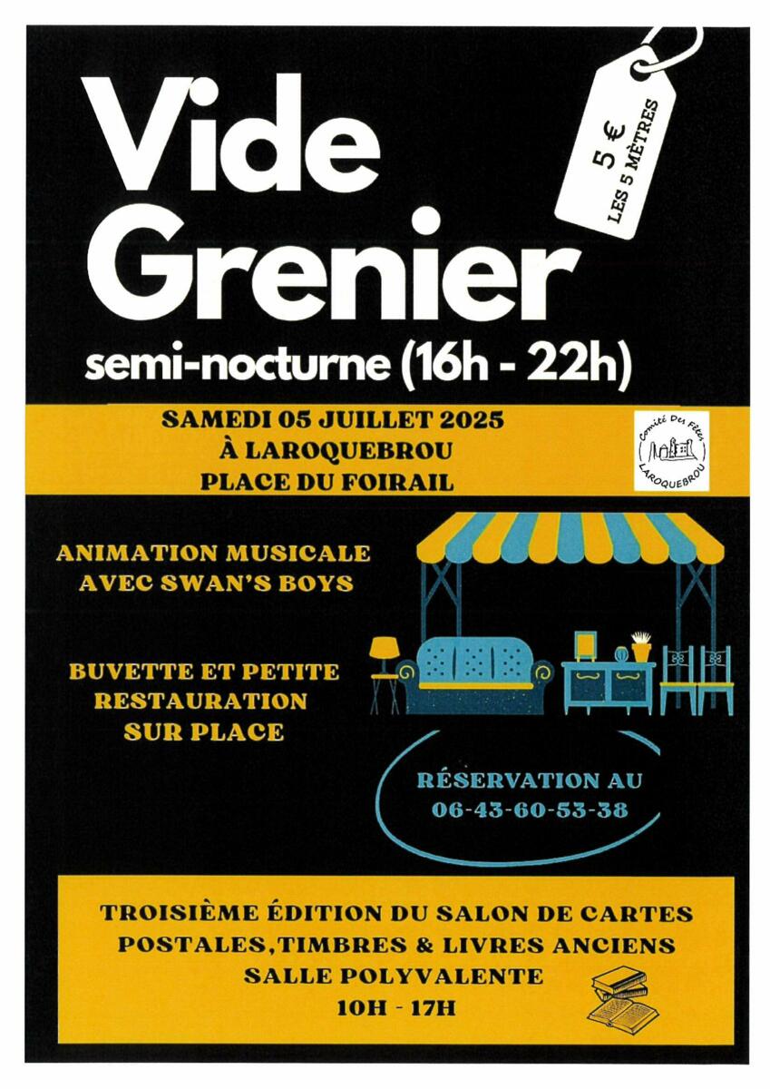 Vide Grenier semi-nocturne 16/6/25 Le Comité Des Fêtes de La Roquebrou organiseSAMEDI 05 JUILLET 2025