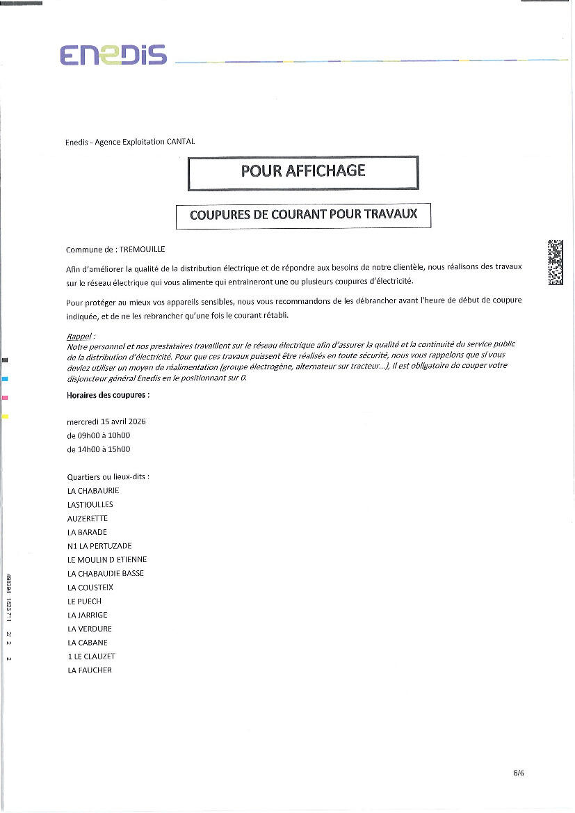 INFO COUPURE PROGRAMMEE D'ELECTRICITE