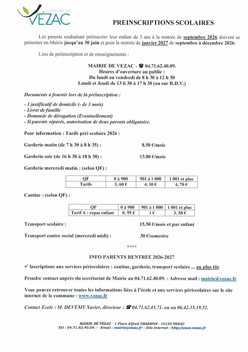 RENTREE SCOLAIRE : INSCRIPTION SEPTEMBRE 2026
