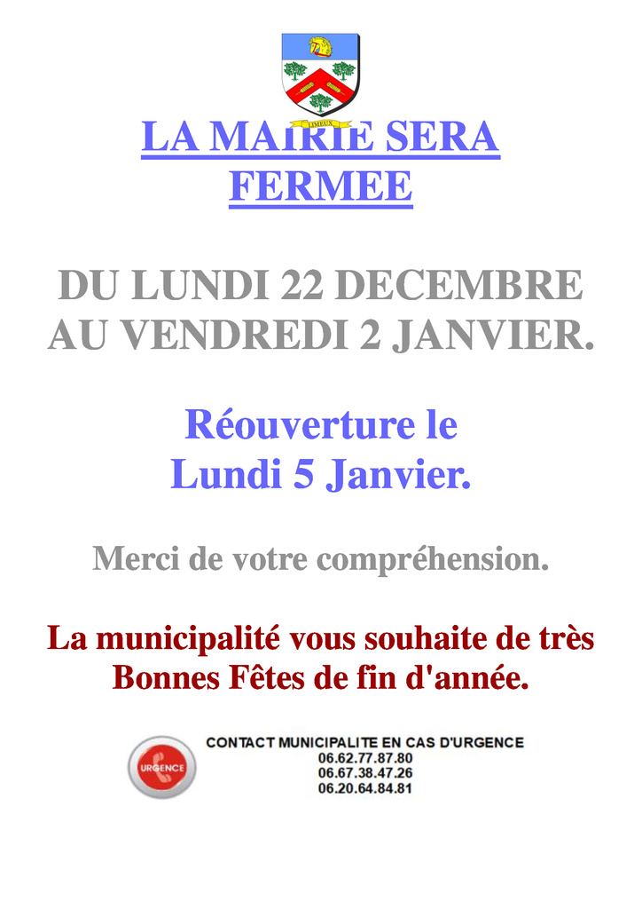 Su ayuntamiento / Noticias / Fermeture de la mairie
