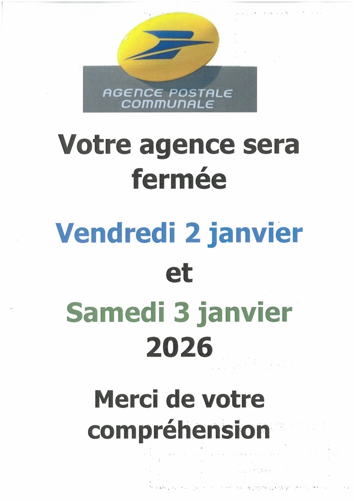 / FERMETURE EXCEPTIONNELLE AGENCE POSTALE COMMUNALE