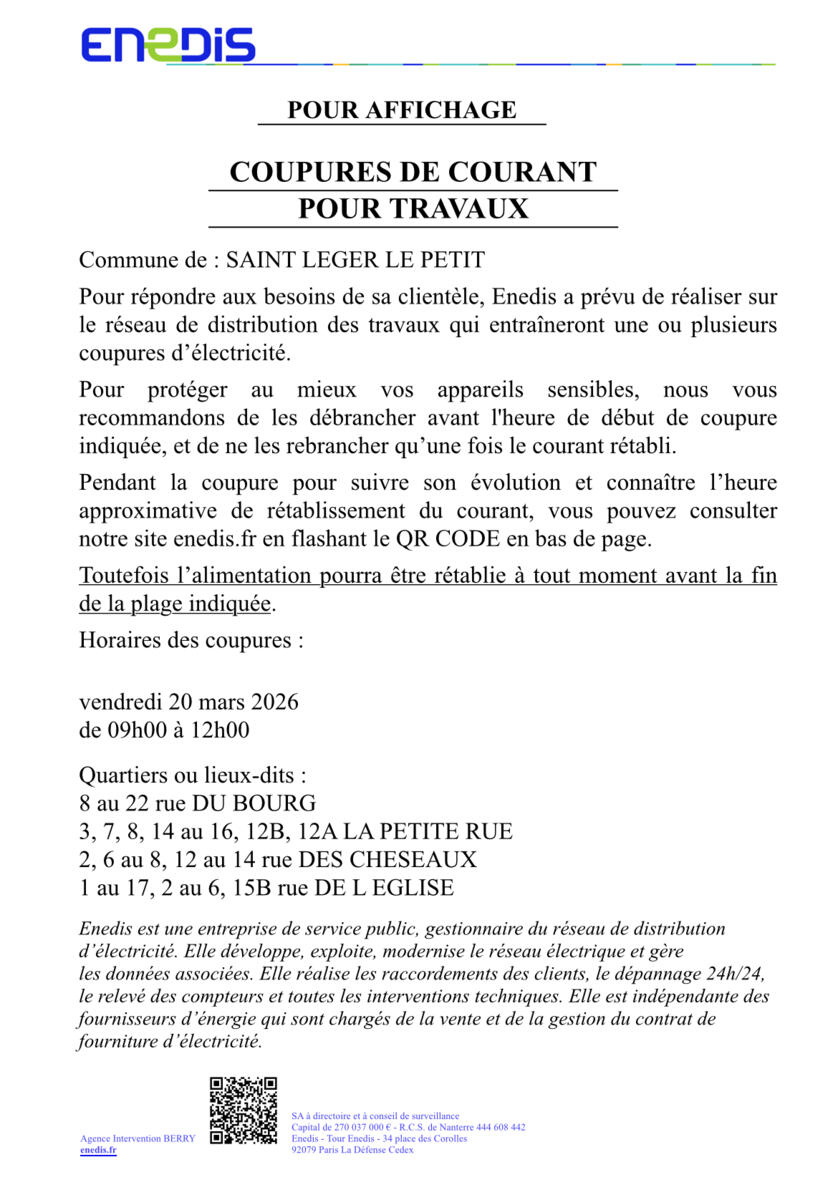 Coupure électricité 20/03 pour travaux