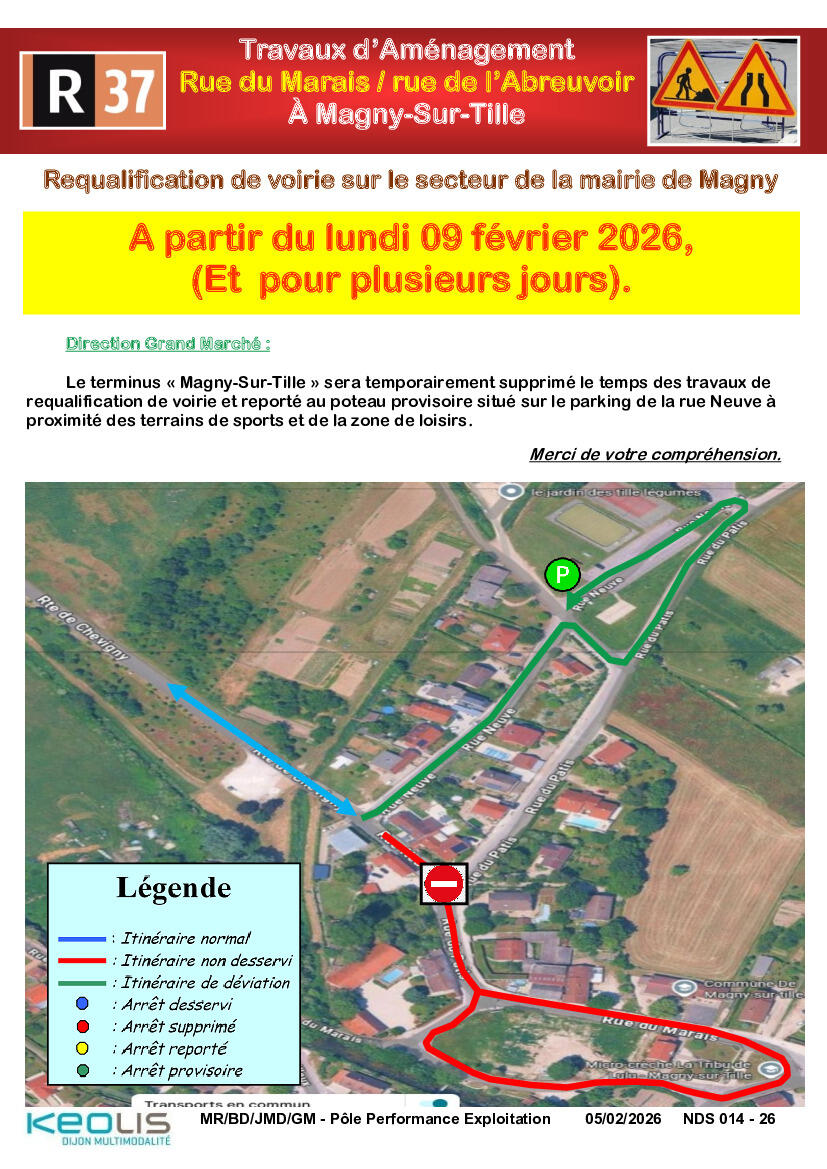 Arrêt bus DIVIA déporté pendant travaux du 9 au 20 février