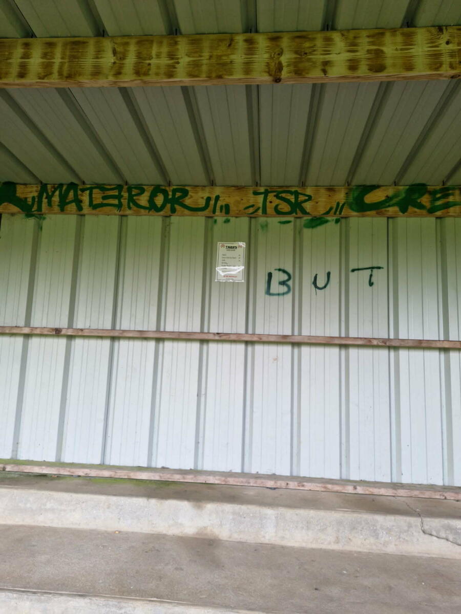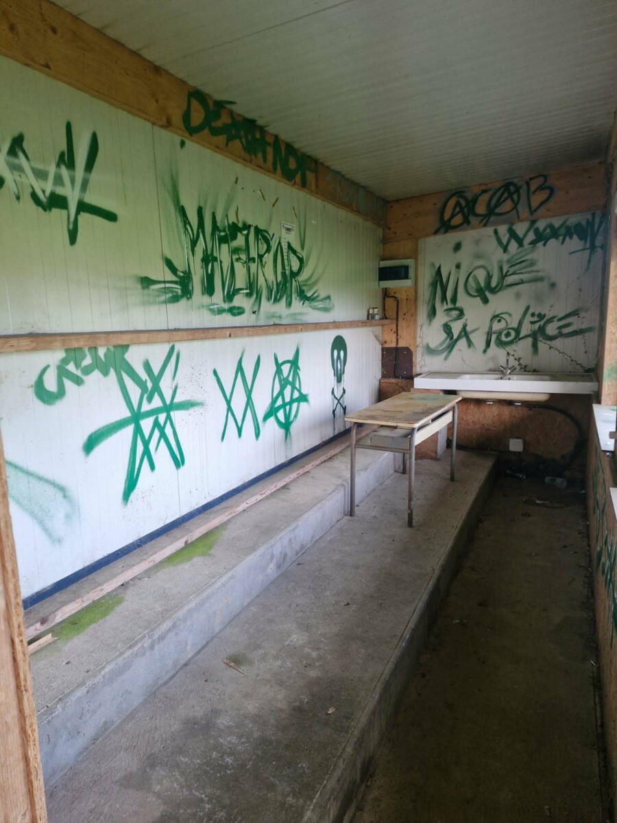 Des dégradations (tags) ont été constatés sur les tribunes du terrain de football.