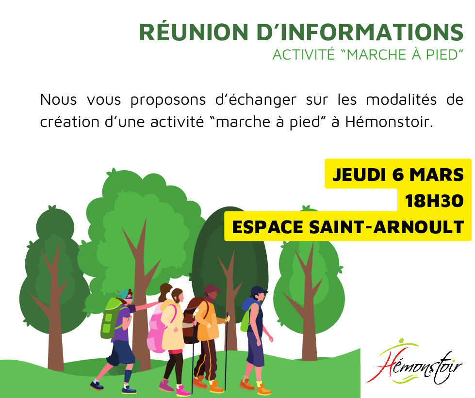 Nous vous proposons une réunion d'informations autour du lancement d'une activité "Marche à pied" sur la commune.