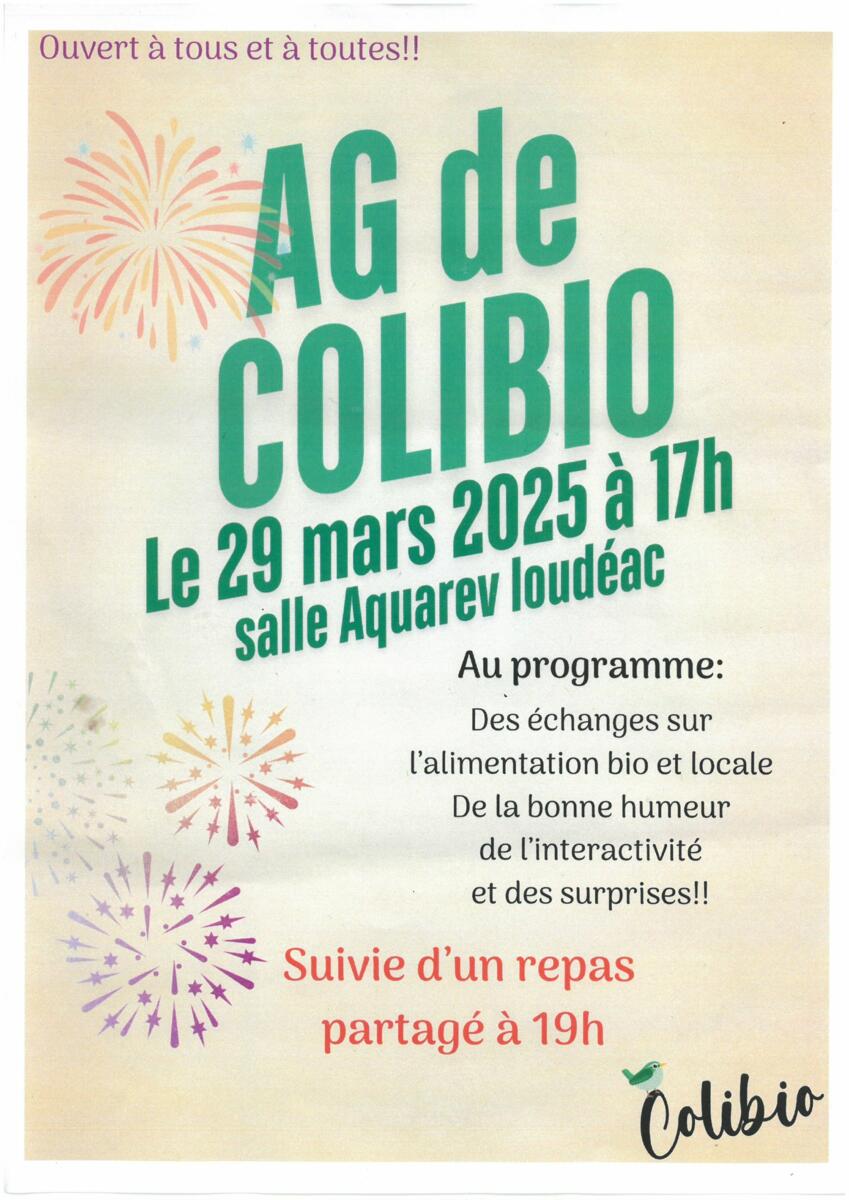 L'AG de COLIBIO se déroulera le samedi 29 mars à 17 h salle Aquarev de loudéac