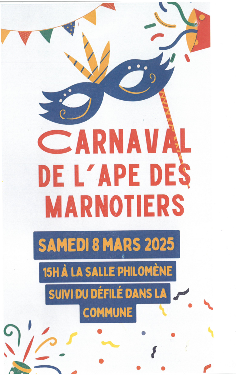 L’Association des Parents d’Élèves (APE) organise ce samedi 8 mars le carnaval, rendez-vous à 15h à l'Espace Philomène suivi du défilé dans le bourg.