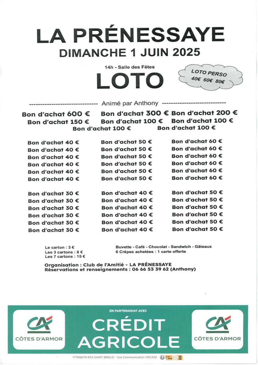 Club de l'amitié : Loto dimanche 1er juin 2025