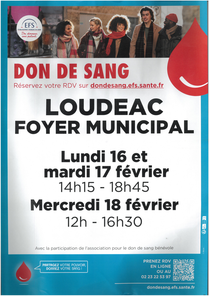 Su ayuntamiento / Noticias / Don du sang du 16 au 18 février Loudéac