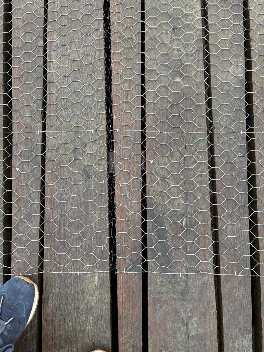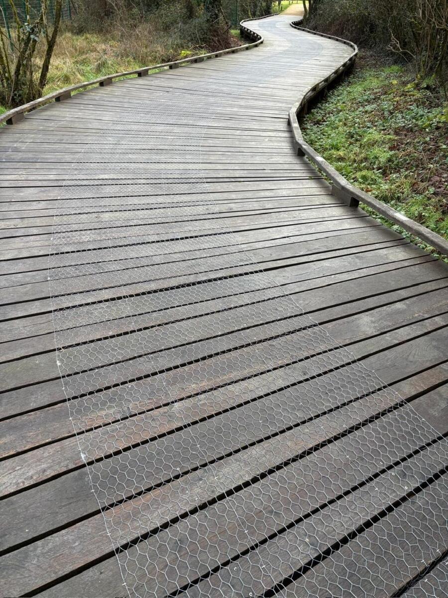 Pour la sécurité de tous, les employés communaux viennent d'installer un grillage à poules sur la passerelle bois de la liaison douce.