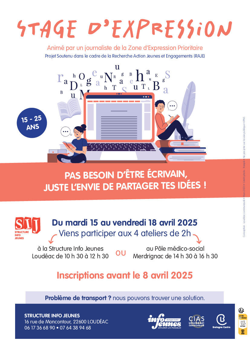 Inscris toi au stage d’expression organisé par la Structure Info Jeunes du CIAS de Loudéac communauté.