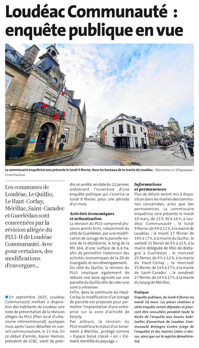 Dans le cadre de l’enquête publique pour la modification du PLUI qui concerne notamment notre commune et le changement de zonage afin de réaliser un futur lotissement, une permanence aura lieu le mardi 17 février en mairie, de 14 h à 17 h.