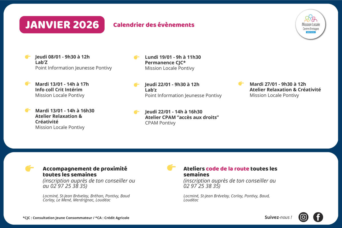Mission Locale : Calendrier des évènements de janvier 2026