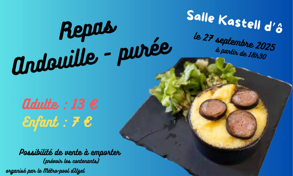 Le club de billard Uzelais "Le Metro-pool" organise un repas Andouille-purée, qui aura lieu le samedi 27 septembre, à la salle Kastel d'Ô de Uzel.