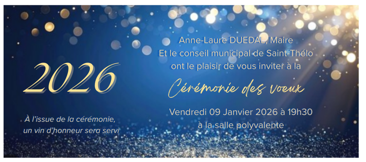 🎀Voeux 2026🎀 7/1/26 Vendredi 9 Janvier à 19h30 Salle polyvalente Source : Mairie de Saint-Thélo