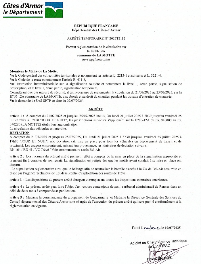 / Arrêté route zone de bel air du 21 au 25 juillet