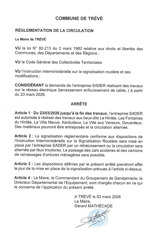 Arrêtés travaux par entreprise Sader