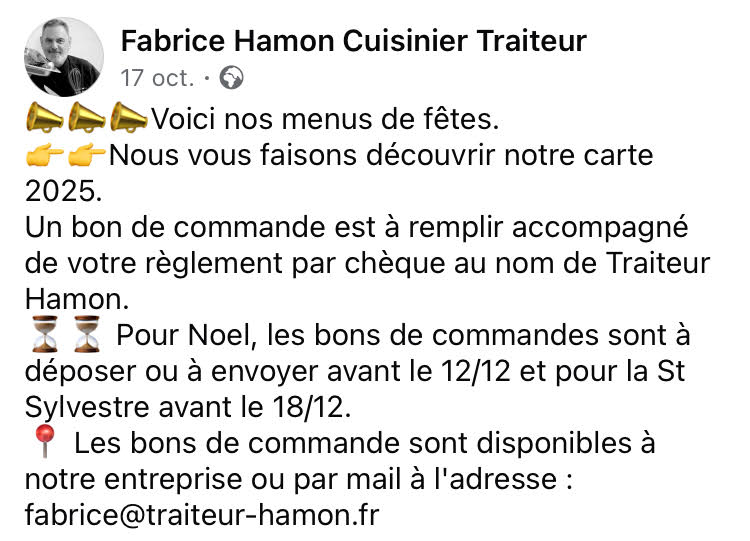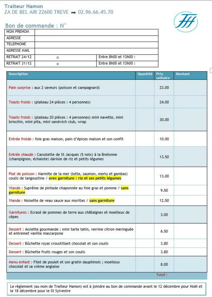 / Fabrice Hamon Traiteur : menus de fêtes