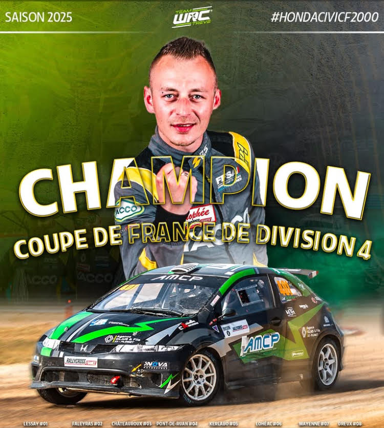 La Team WRC de Trévé avec son pilote Luc DERRIEN a passé un week-end d'exception  lors de la 8ème et dernière manche du championnat de France de Rallycross à Dreux avec 2 victoires en Q2 et Q3, une première place en demi finale et bien sûr la victoire en finale devant son concurrent direct Arthur Barbault Forget qui comptait 15 points d'avance avant le week-end.