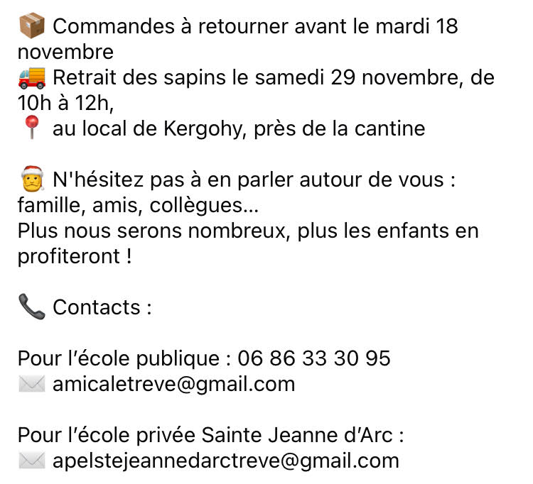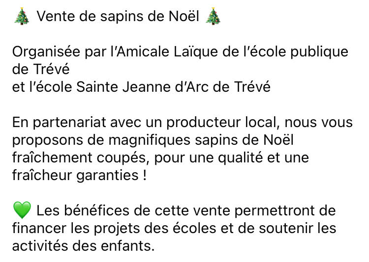 Ventes de sapins de Noël des 2 écoles