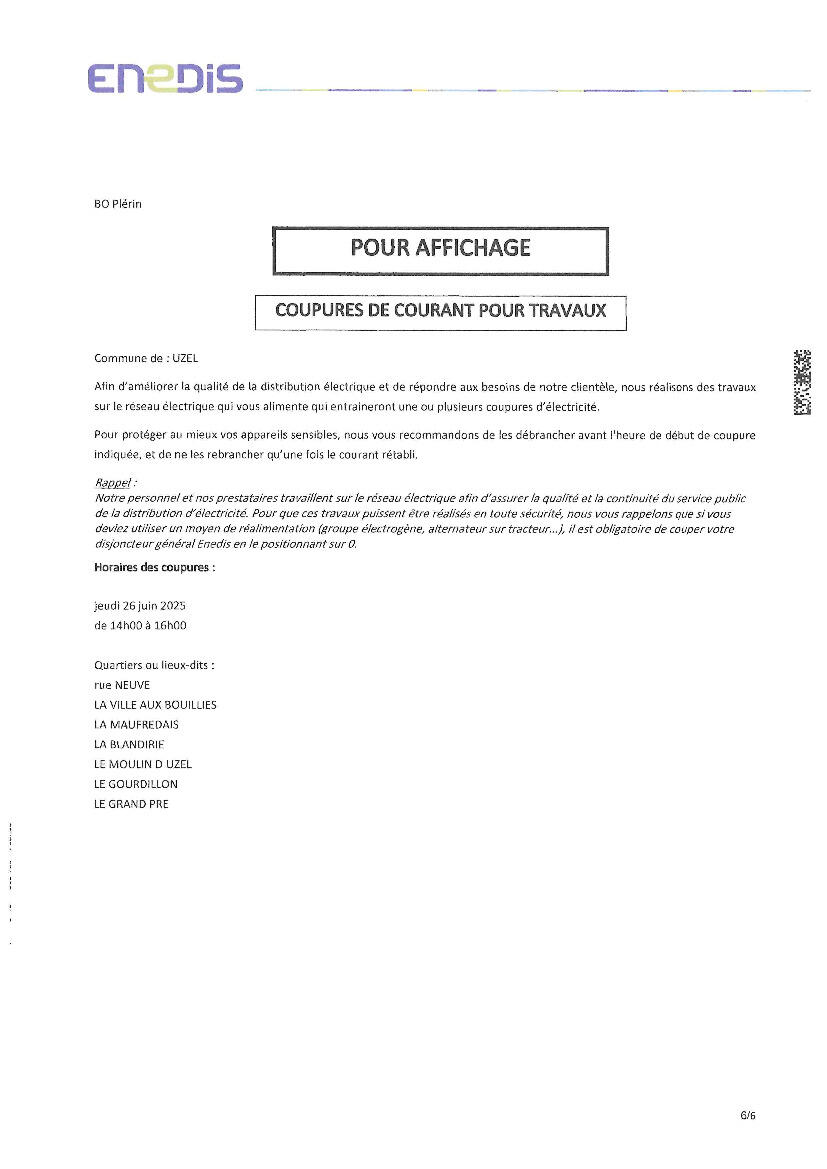 Une deuxième coupure d'électricité aura lieu le 26 juin après-midi sur la commune.