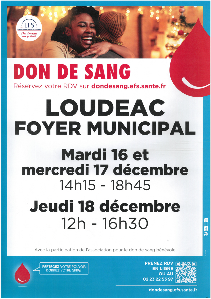 Don Du Sang Du 16 Au 18 Décembre Loudéac