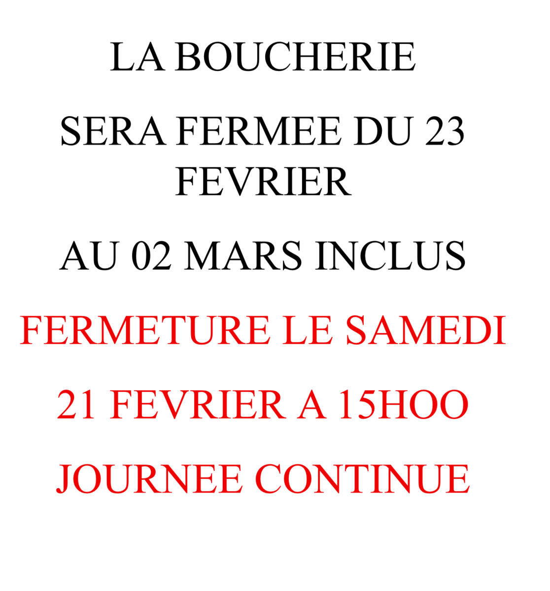 Les plats à emporter de la semaine et les dates de fermeture.