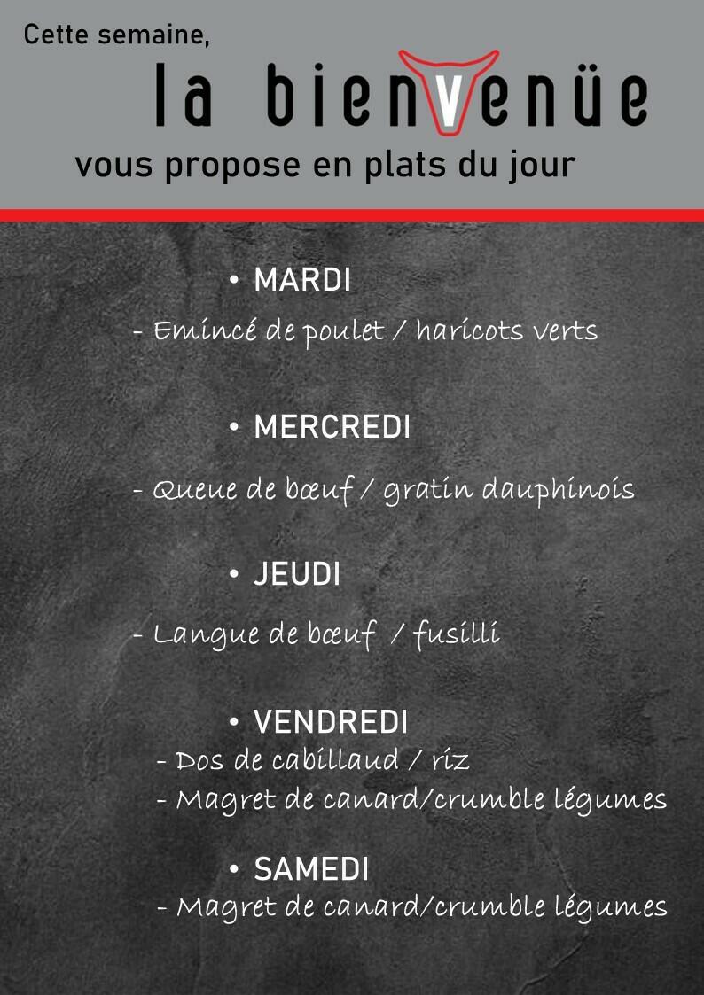 La Bienvenūe 19/2/26 Les plats à emporter de la semaine et les dates de fermeture. Source : Mairie d'Uzel-près-l'Oust