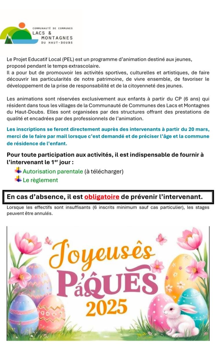 Su ayuntamiento / Noticias / Programme PEL vacances avril