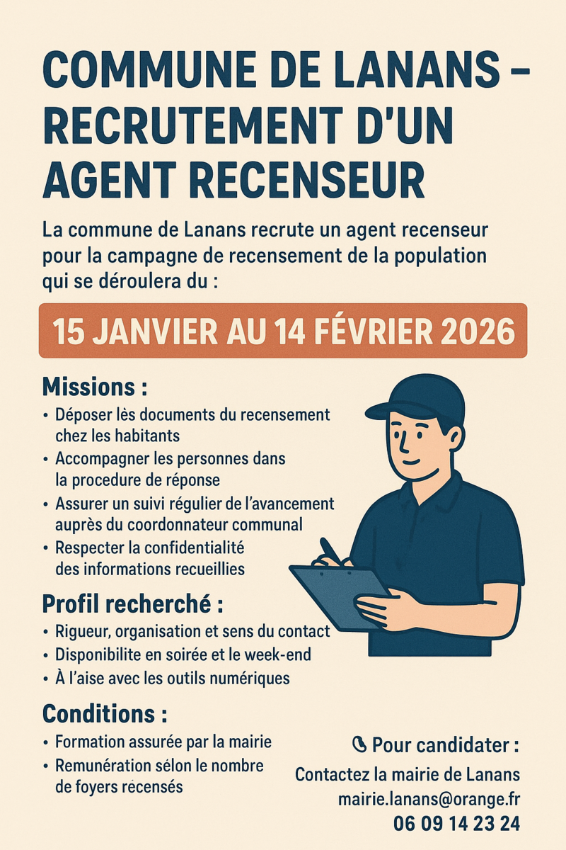 Lanans- recrutement agent recenseur.