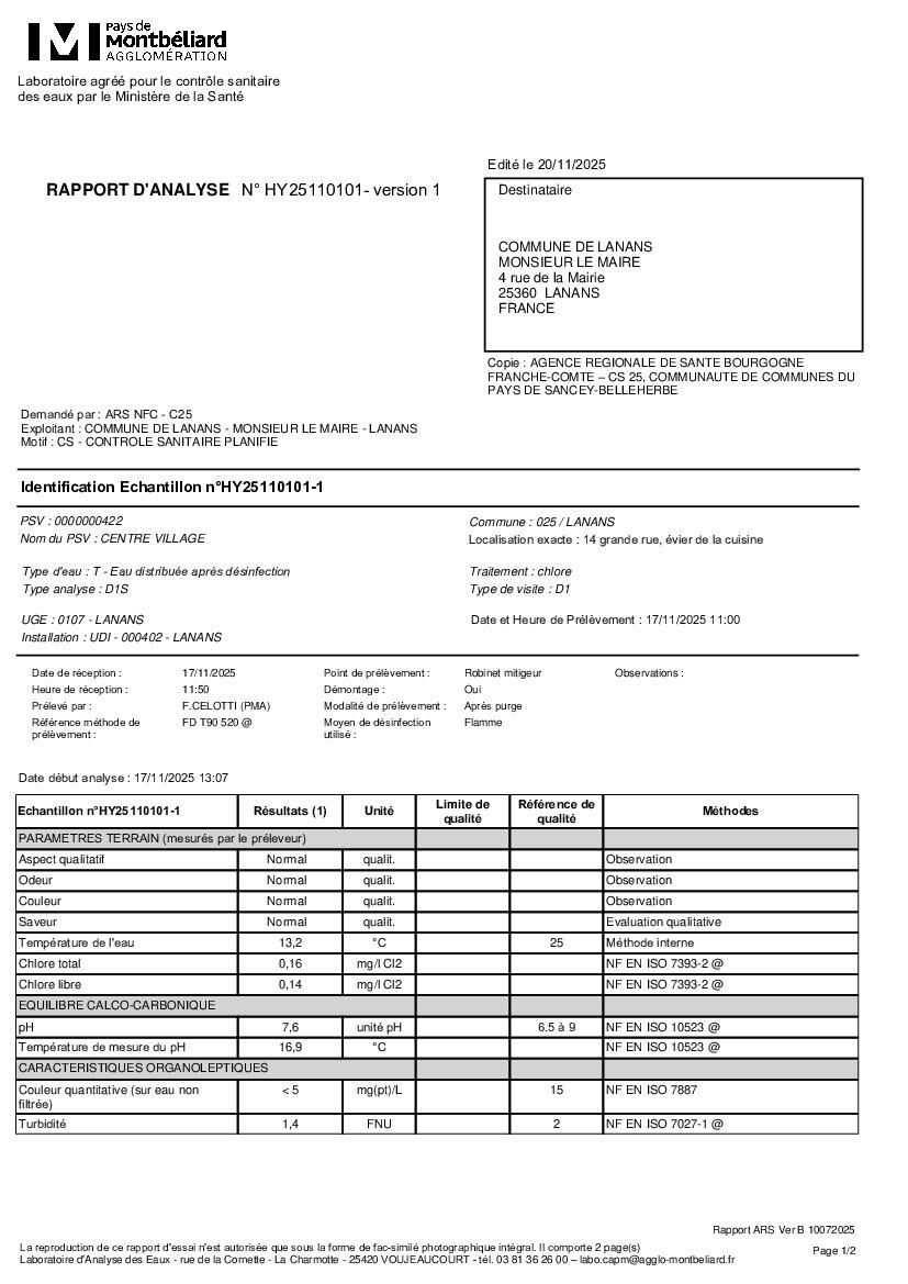Analyse eau conforme